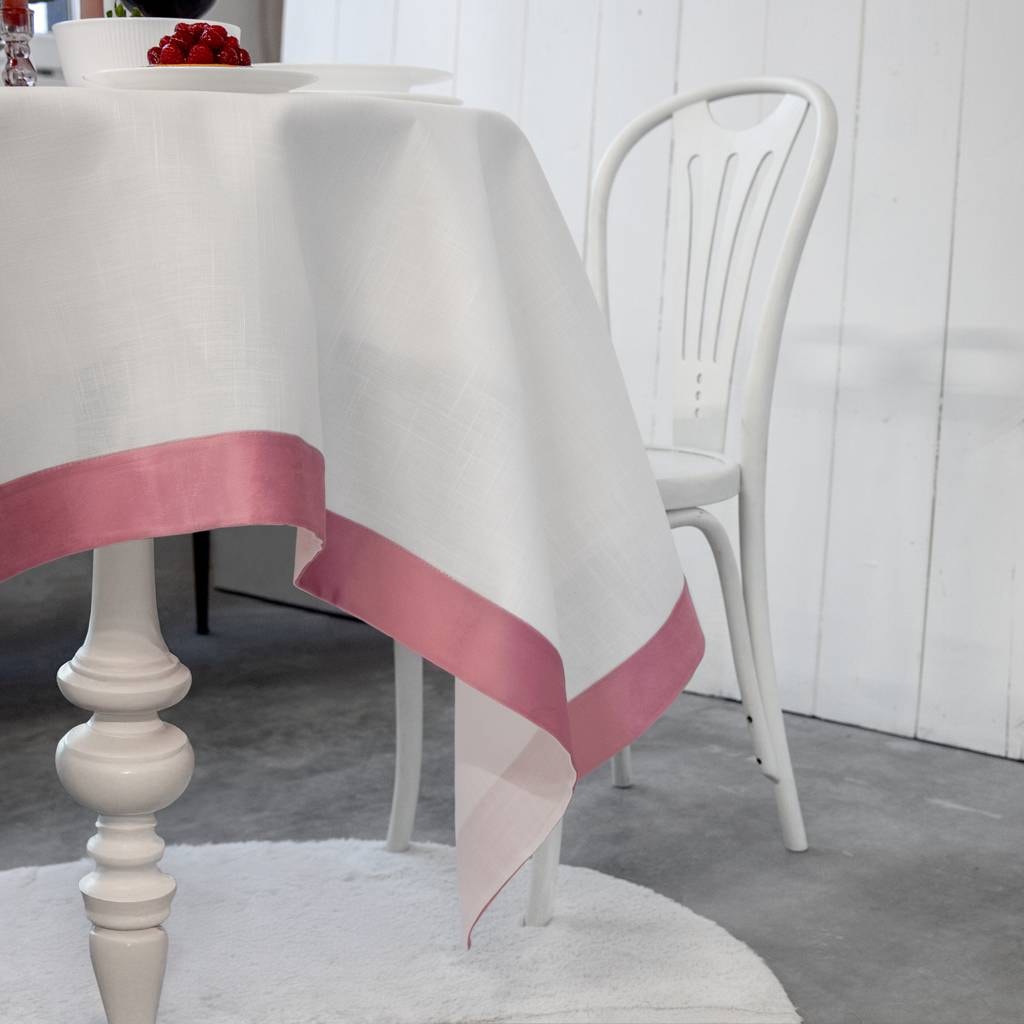 Fața de masă Pastel este un element elegant de decor pentru masă, care combină o formă simplă cu un accent pastelat subtil. Suprafața netedă a materialului este combinată cu o ramă decorativă din catifea, datorită căreia fața de masă arată stilat și modern. Un astfel de detaliu subliniază estetica mesei și introduce un accent cromatic delicat în interior.